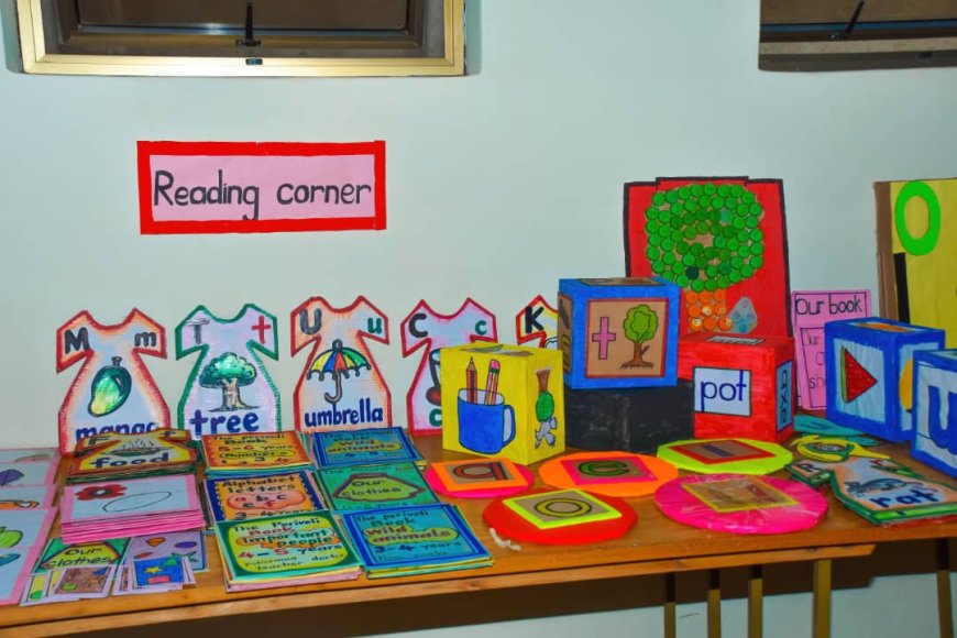 The space is designed to feel warm and safe, encouraging children to develop a love for reading. Bright pictures, alphabet charts, word cards, and simple illustrations are often displayed on the walls to support early literacy. In a nursery setting, the r